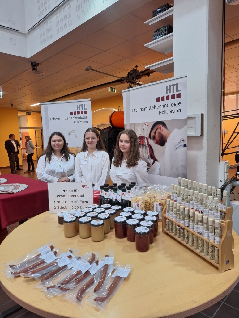 Auch heuer wieder haben wir an drei Tagen unsere Türen geöffnet und unseren interessierten Gästen unser Ausbildungsangebot nähergebracht. Unsere Guides aus dem dritten, vierten und fünften Jahrgang führten unsere Gäste durch die chemischen und mikrobiologischen Labors, wo sie den Schüler*innen im praktischen Unterricht über die Schulter schauen konnten. In unserem Sensoriklabor wartete eine knifflige Aufgabe, galt es doch eine abweichende Joghurt-Probe zu identifizieren. Anschließend konnte man sich im Technologikum mit von unserem 1. Jahrgang produzierten Mohnflesserln belohnen. Offen gebliebene Fragen beantwortete unser Schulleiter DI Gottfried Krottendorfer gerne im persönlichen Gespräch. Einen gelungenen Abschluss der Tour durch die HTL LT bildete schlussendlich noch ein Besuch beim traditionellen L-Buffet, wo unser 3. Jahrgang mit Crepes, Kuchen, Broten, sowie Cafe und Fruchtsäften für das leibliche Wohl unserer Gäste sorgte. Eine besondere Freude ist es auch, dass uns immer wieder Absolvent*innen besuchen kommen und erzählen, wie es ihnen nach ihrem Schulabschluss ergangen ist.
